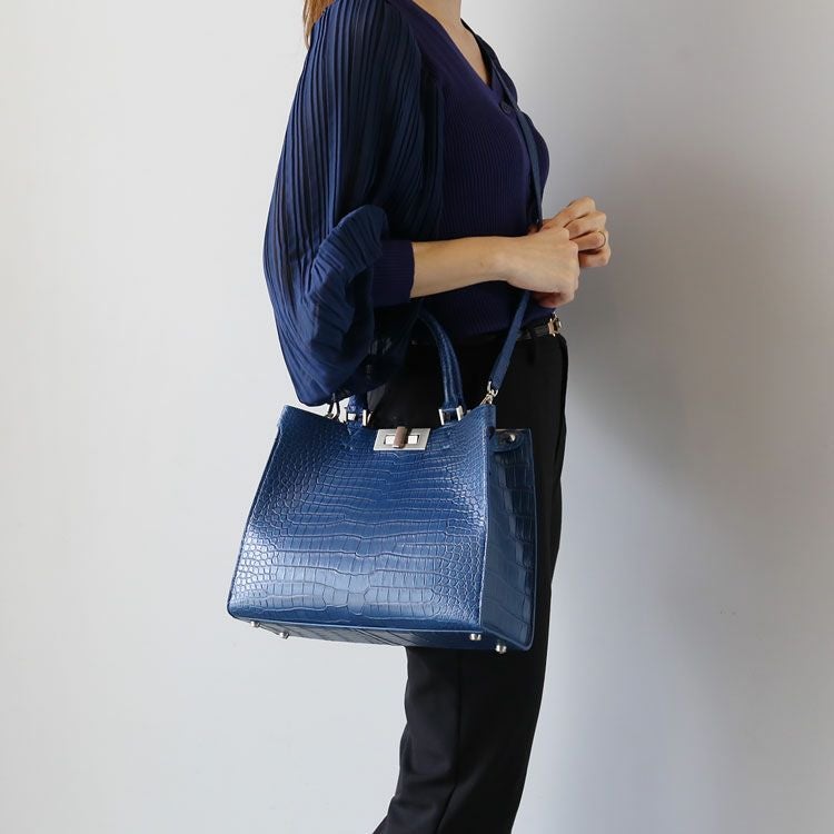 ※キーワード:クロコダイルバッグ スモールクロコダイルバッグ ポロサス トート型 婦人 レディースバッグ 本革 鰐革 B5バッグ ミディアムバッグ ミディアムトート レディースバッグ ハンドバッグ