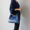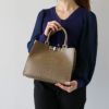 開口部にシルバーの留め具式が付いたミディアムサイズのバッグです。