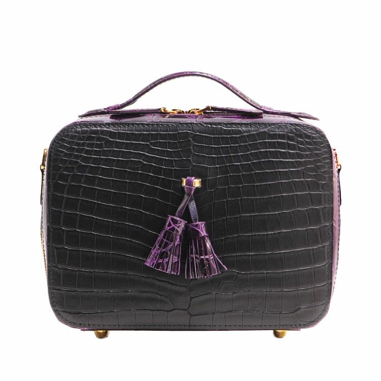 | 商品名:クロコダイル 2WAY バッグ フリンジ デザイン マット & シャイニング センター取り 本革 ヘンローン ブルー×レッド/バイオレット/ブラック |
