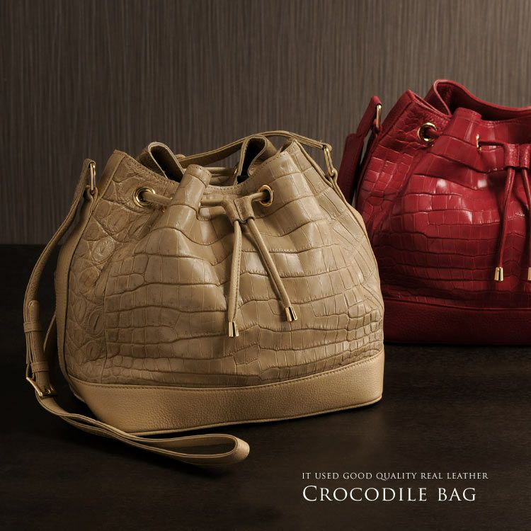 商品名:クロコダイル 巾着 バッグ / マット加工 ショルダー レディース