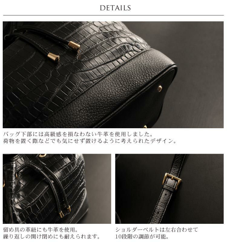 2. クロコダイル 巾着 バッグ / マット加工 ショルダー レディース 『クロコダイル保証書付き』 4FA