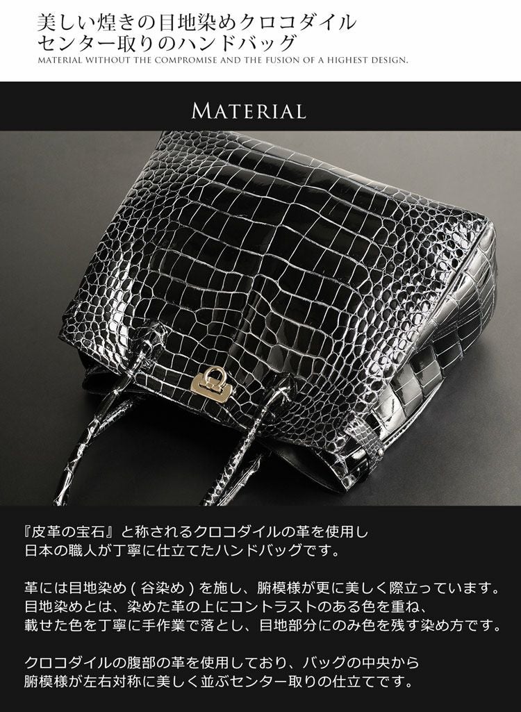 クロコダイルを使用し、日本の職人が仕立てたハンドバッグです。
