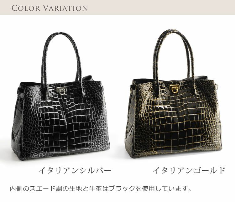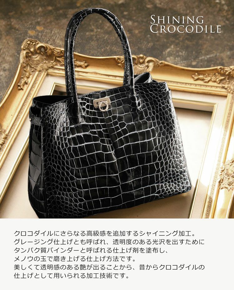 | 商品名:クロコダイル ハンドバッグ シャイニング 加工 目地染め 日本製 / レディース |