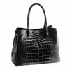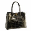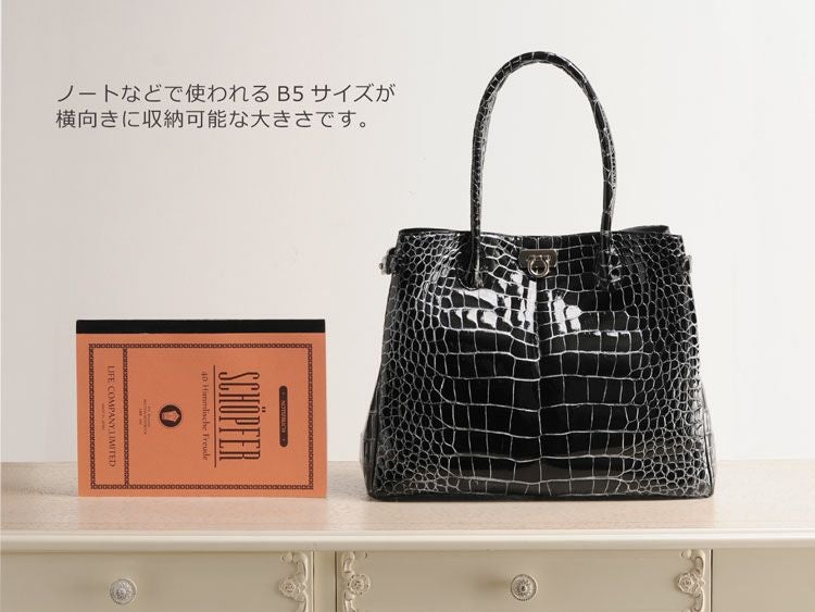 天然皮革 エキゾチックレザー 日本製 クロコダイル ハンドバッグ シャイニング加工 目地染め/レディース クロコダイル女性 本革 JRAマーク付き 黒 肩掛け レディースバッグ 安心 保証書 付き 母 女性ギフト ladiesbag
