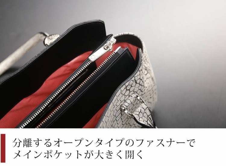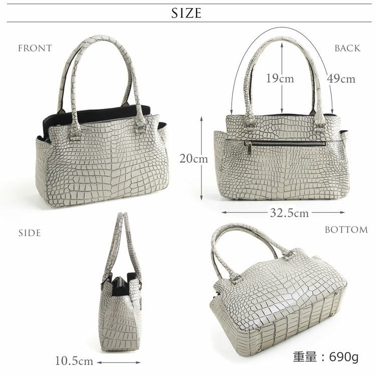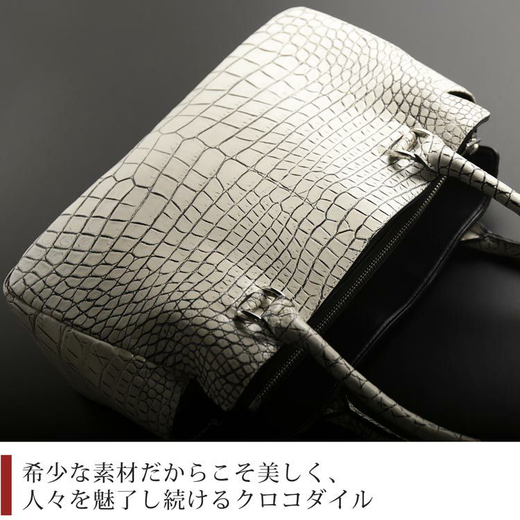 商品名:クロコダイル ハンドバッグ レディース 日本製 天ファスナー あおりポケット付き 保証書 付き