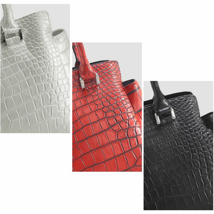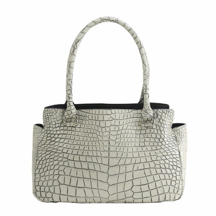 クロコダイルの腹部の革をバッグの中央に配したセンター取りのバッグです。