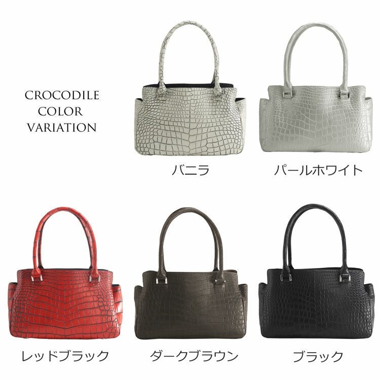 クロコダイル ハンドバッグ レディース 日本製 天ファスナー あおりポケット『クロコダイル保証書付き』 4FA