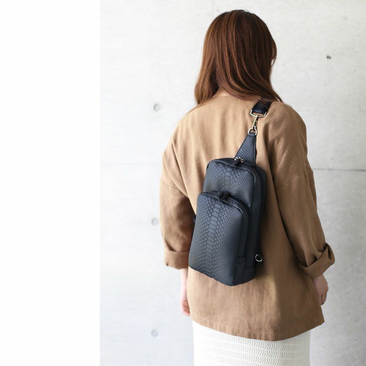 ダイヤモンドパイソンのA5サイズが入る大きめのボディバッグです。