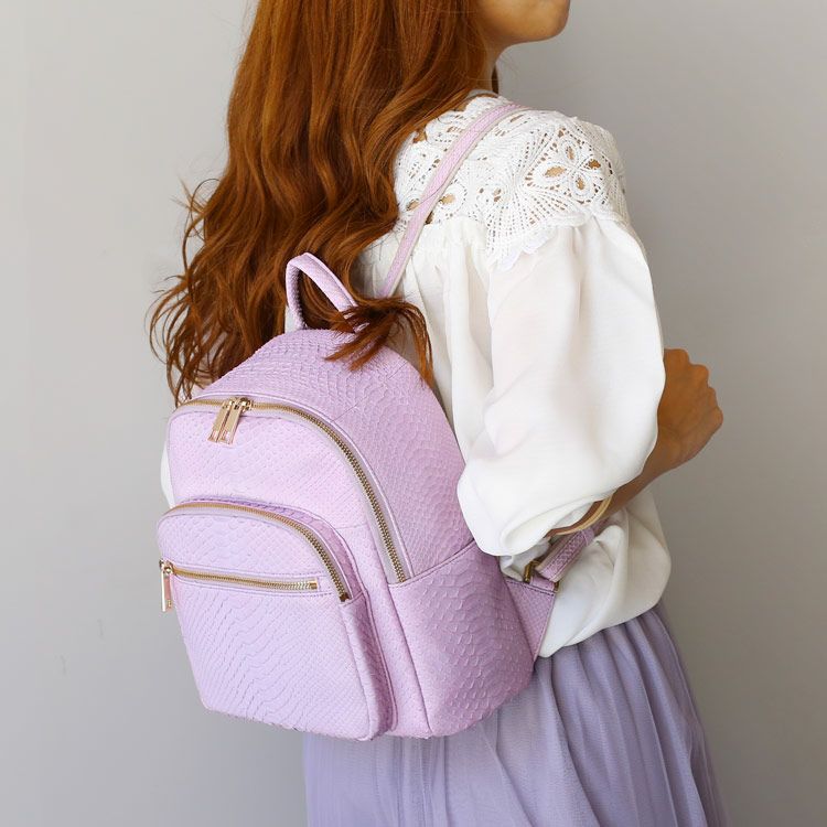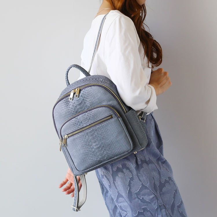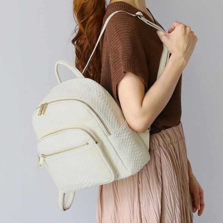 ※キーワード:パイソンバッグ レディースリュック サイドポケット カードポケット 付き 両開きファスナー
