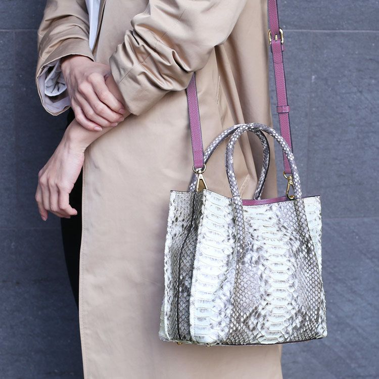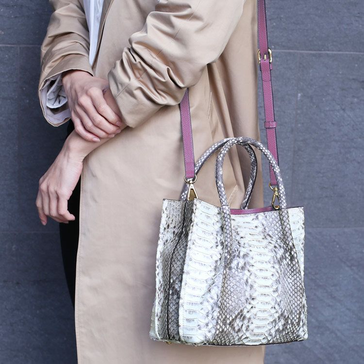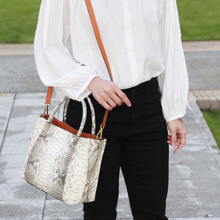 ダイヤモンドパイソンのバイカラーがかわいい2wayバッグです。