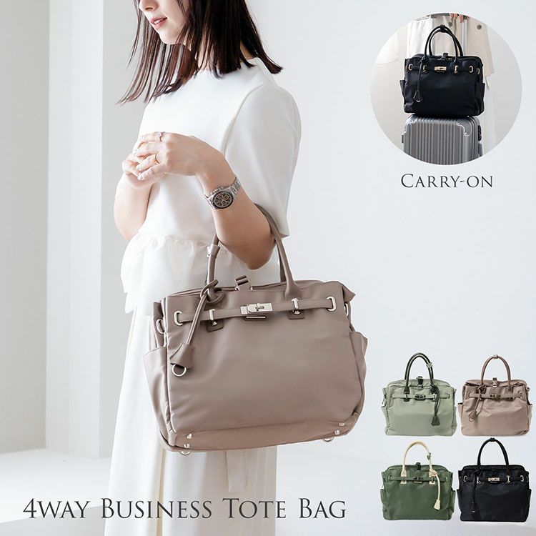 商品名:4way ビジネスバッグ レディース ナイロン A4 PC収納 ハンドバッグ ショルダーバッグ キャリーケース 乗せる 出張 旅行 キャリーオン リュック 多機能 収納 ブラック グレー グリーン ベージュ 4FB (07000664r)