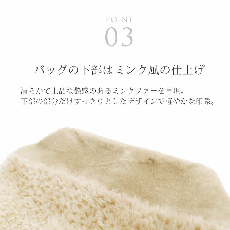 触るたび癒されるふわふわの手触り。これひとつで一気にスタイルの変わる万能バッグ!