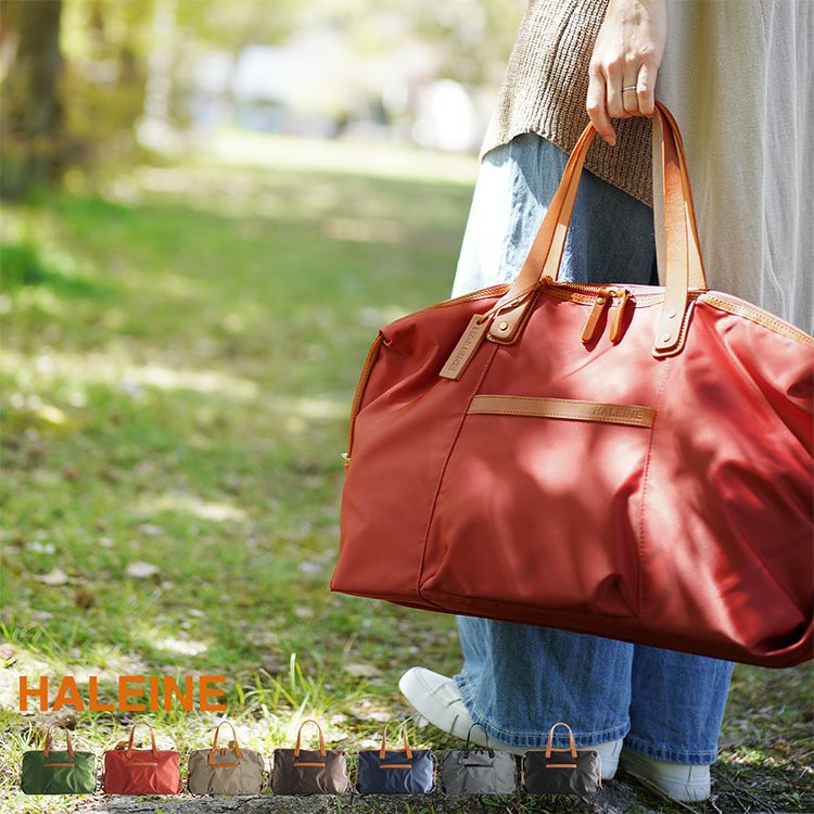 ボストンバッグ レディース HALEINE ナイロン 栃木レザー たつのレザー 大人 軽い 旅行 軽量 ライム/レッド/ダークブラウン/ネイビー/ブラック A4 本革 スポーツバッグ ジム 女性 ギフト プレゼント マザーズバッグ 一泊二日 ギフト ladiesbag mensbag