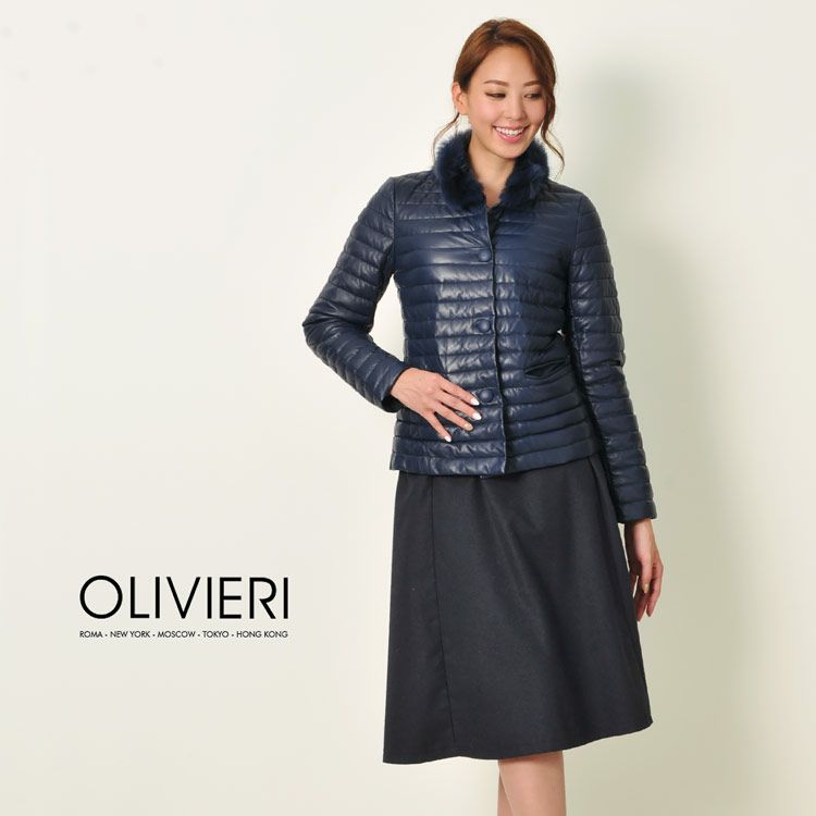 OLIVIERI/オリヴィエリ ダウン レザー ジャケット ラム革 トスカーナ ムートン ファー 襟 イタリア製 / レディース 7F