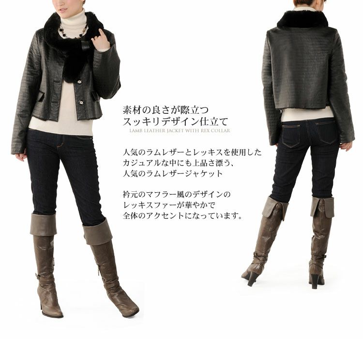 ラムレザー&レッキスジャケットレッキス衿付き ブラック 7F