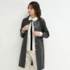 顔回りがすっきり際立つノーカラーデザインは、アクセサリーやマフラーなど