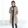 顔回りがすっきり際立つノーカラーデザインは、アクセサリーやマフラーなど