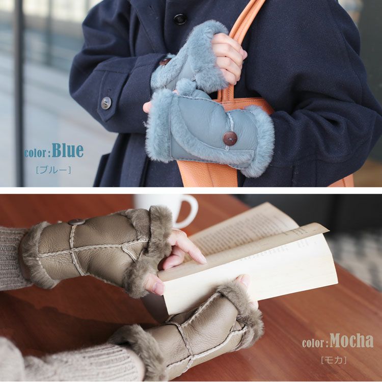 商品名:ムートン ダブルフェイス 指抜き グローブ 本革 レディース 全6色
