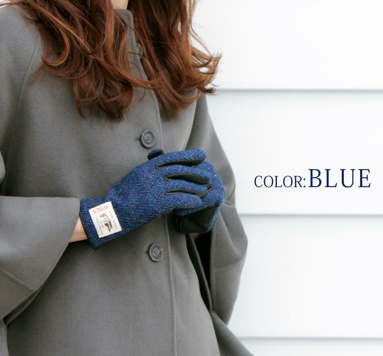 【名入れ 別途購入で可能】AVOCA ツイード 手袋 グローブ レディース ヘリンボーン ラム革 スマホ対応 ボア【ネコポスで送料無料】 7F