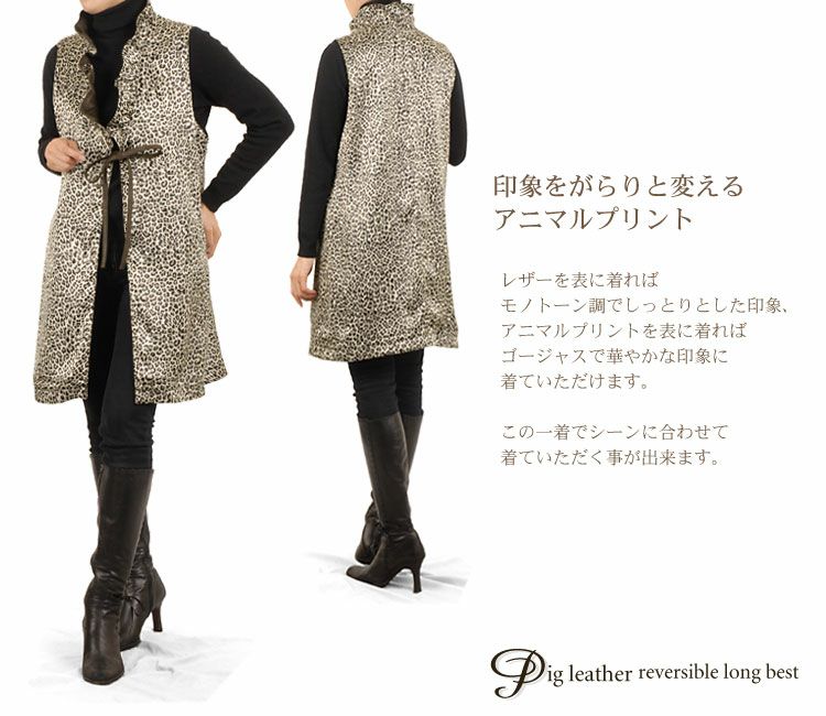 ピッグレザーリバーシブルロングベスト 7F