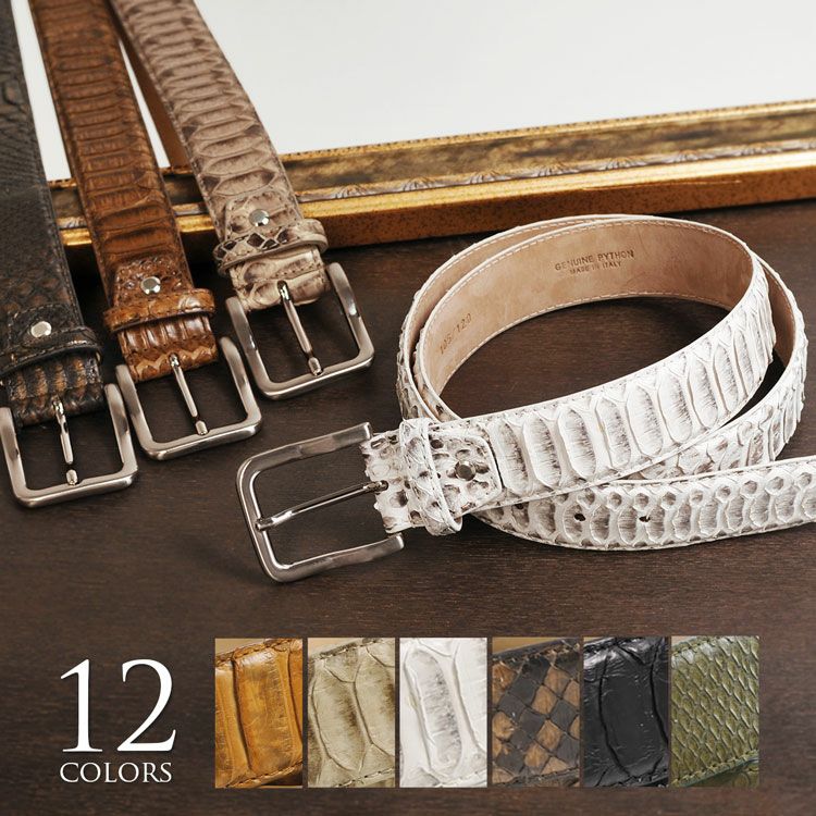 天然皮革 エキゾチックレザー イタリア製 パイソン レザー ベルト 40mm レディース 女性用 本革 革 カジュアル おしゃれ かっこいい ビジネス パイソン柄 大きいサイズ プレゼント ギフト