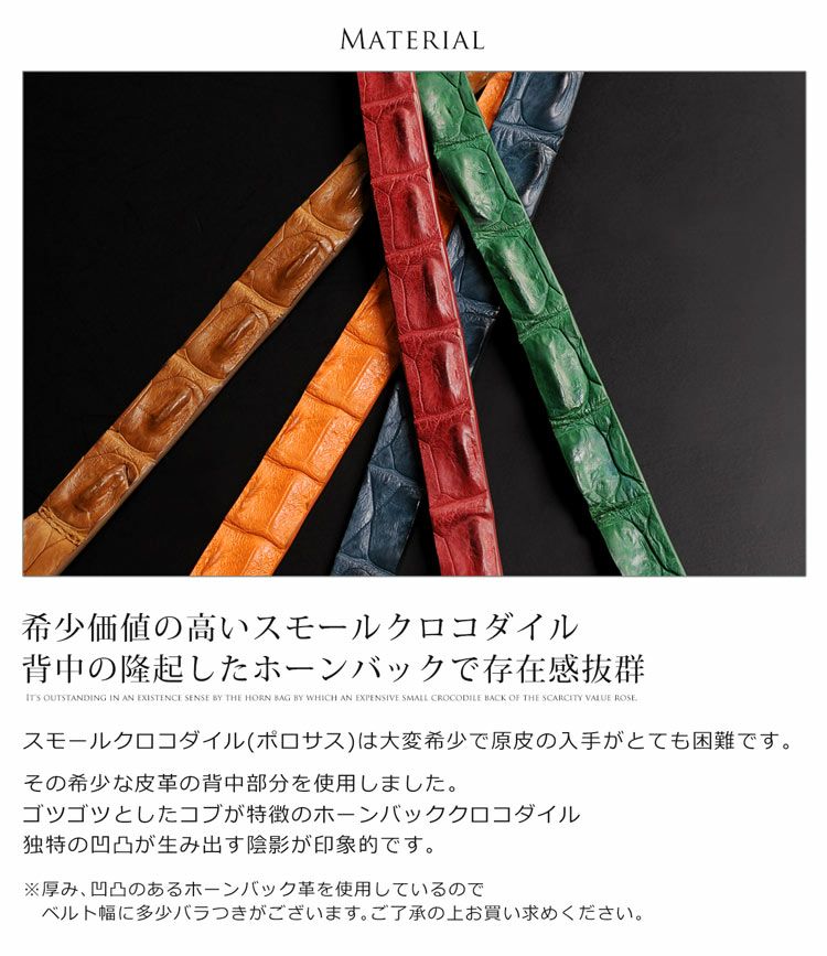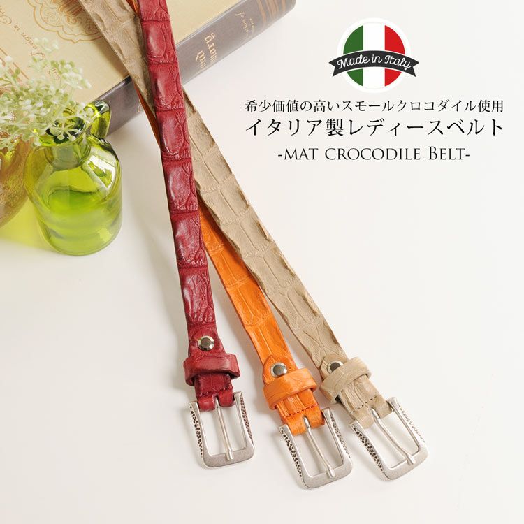 天然皮革 エキゾチックレザー イタリア製 スモールクロコダイル 細ベルト/ピンタイプ ポロサス ホーンバック レディース イタリー 女性 鰐革 ワニ革 本革 レザー マット加工 スモールクロコダイル 母 女性 プレゼント ギフト