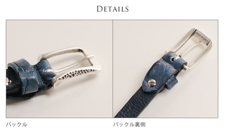 ゴツゴツと隆起したデザインが特徴のイタリア製のクロコダイルホーンバックベルト。