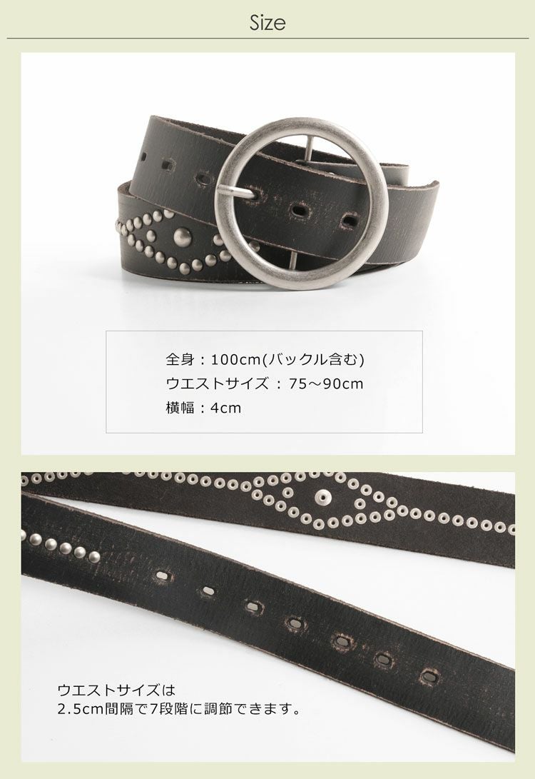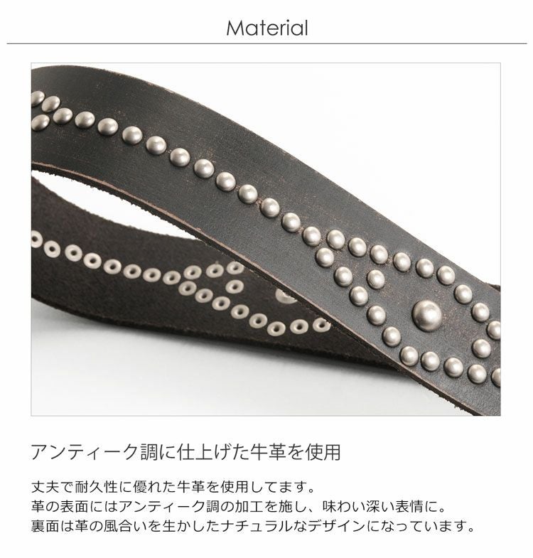 | 商品名:Rametto Belly/ラメットベリー 牛革 ベルト スタッズ付き アンティーク調 |