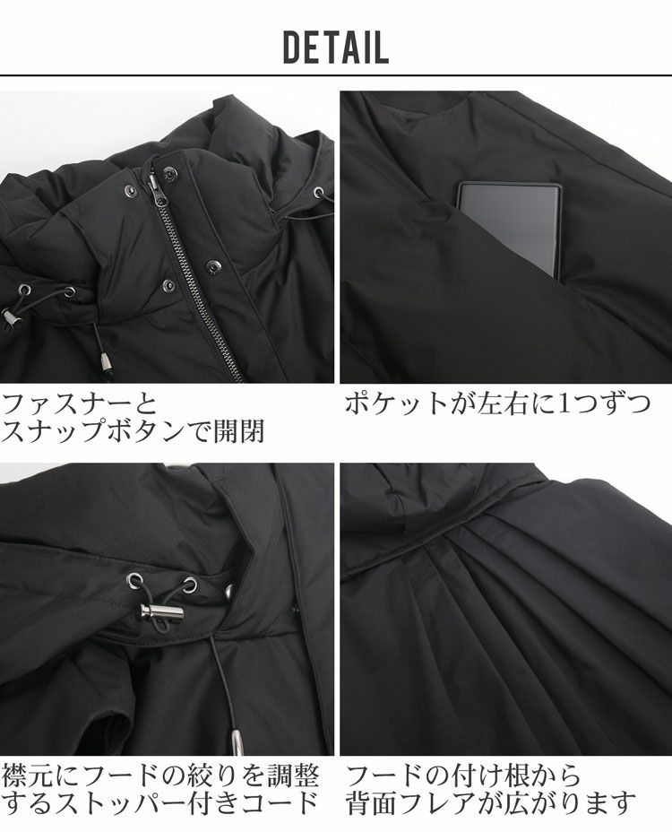 | 素材 | 本体 前身頃:ポリエステル100% 後身頃:レーヨン60%、ナイロン40% 裏地:ポリエステル100% 中わた(前身頃):ダウン90%、フェザー10% |
