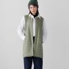 お尻が隠れる長さのノーカラーデザインのダウンロングベストです。