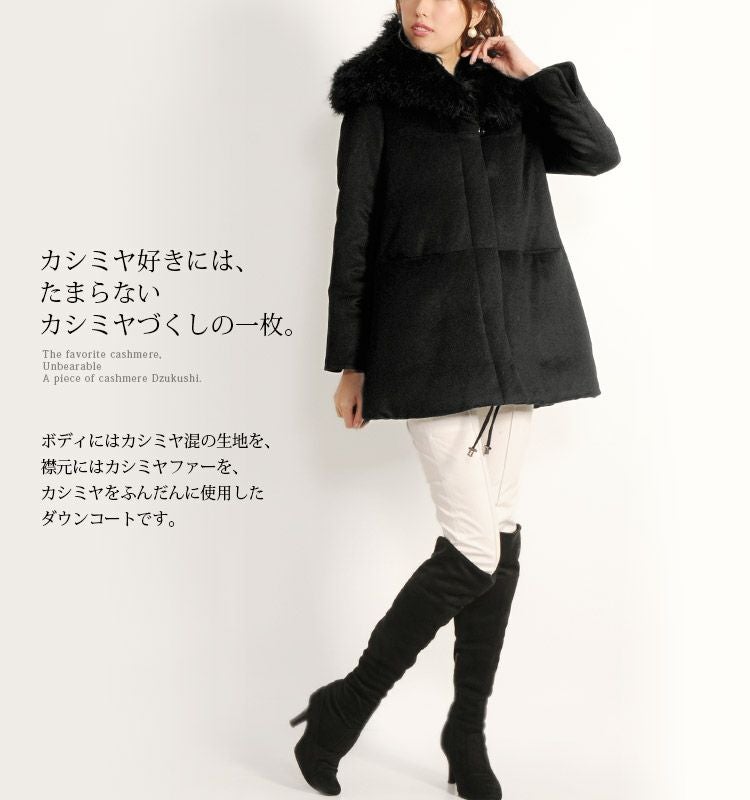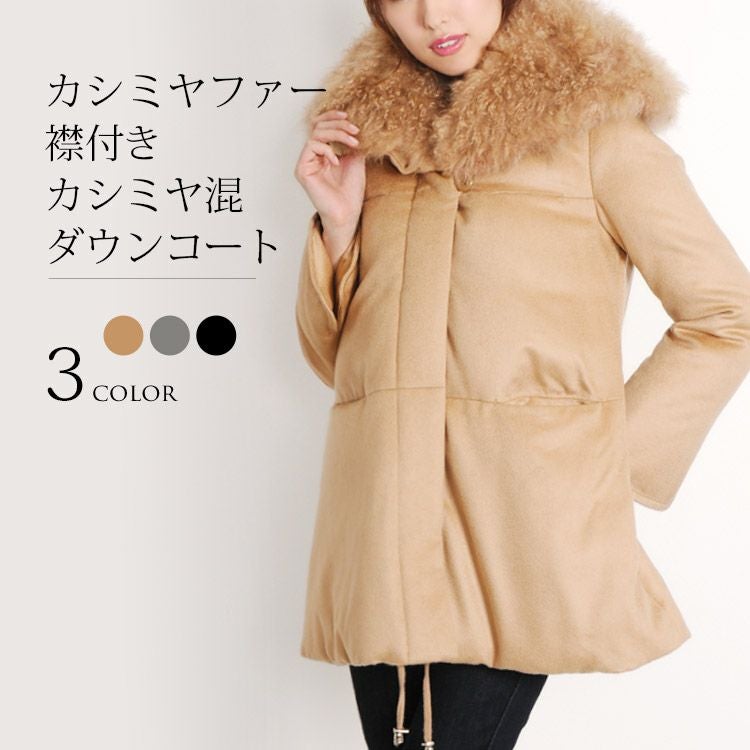 | 商品名:カシミヤ混 ダウンコート カシミヤ ファーカラー ダウン90% / レディース |