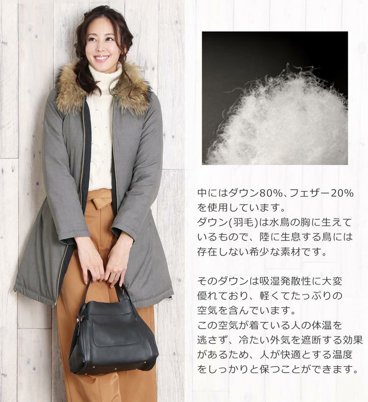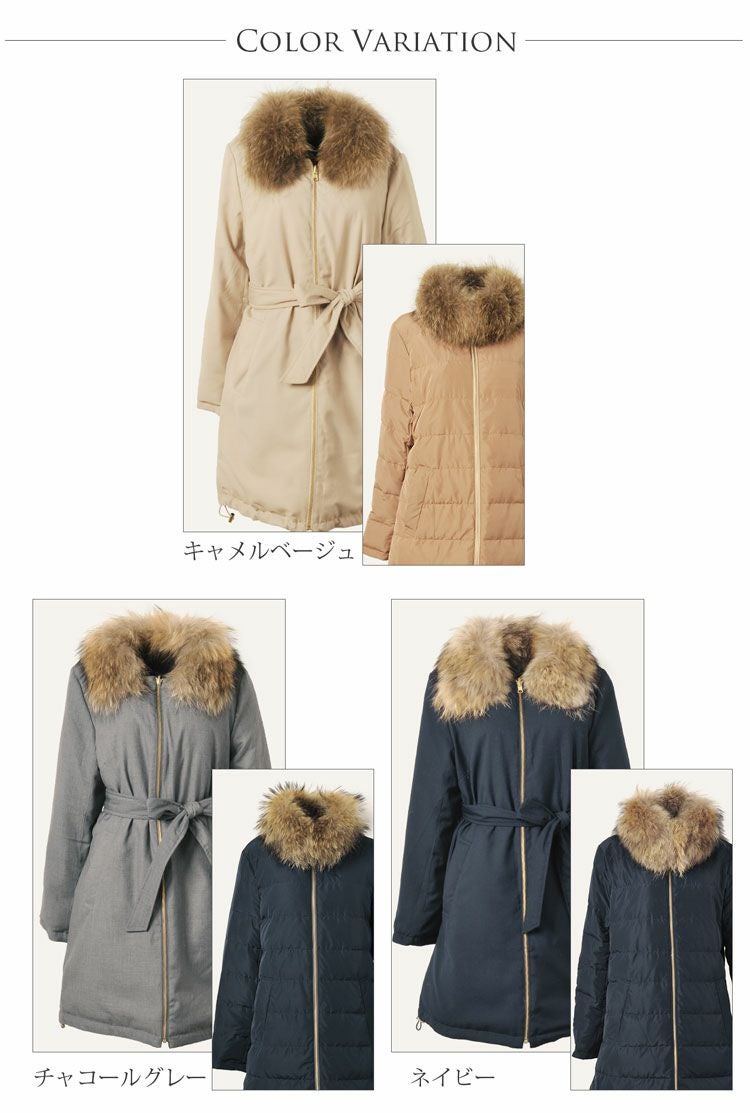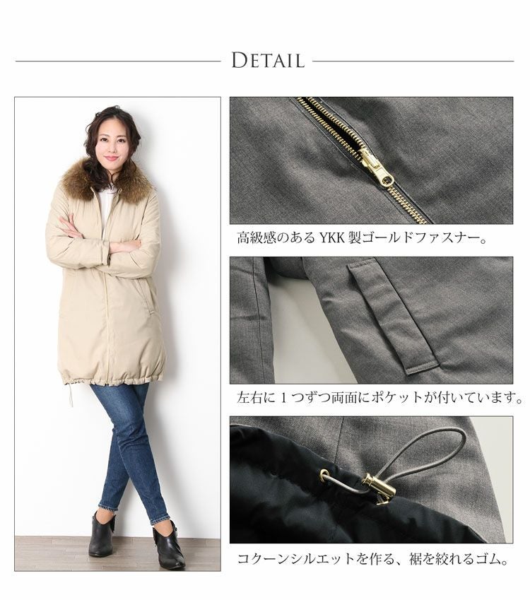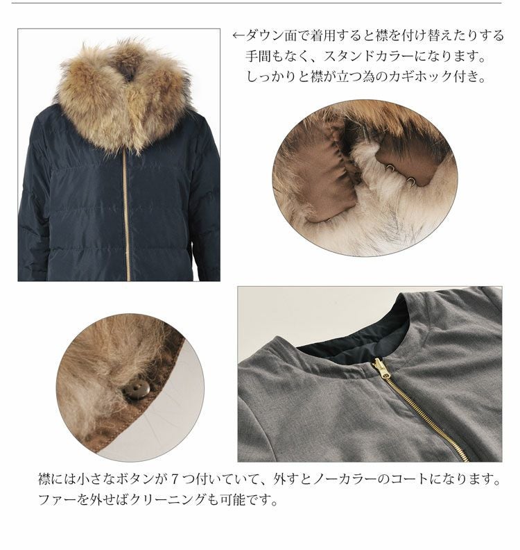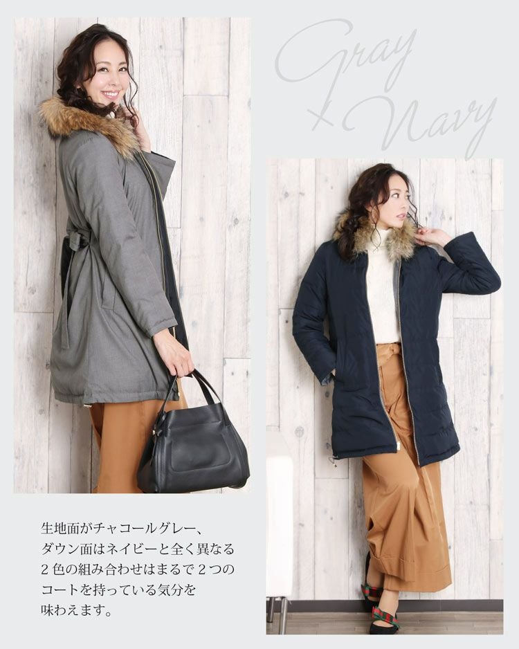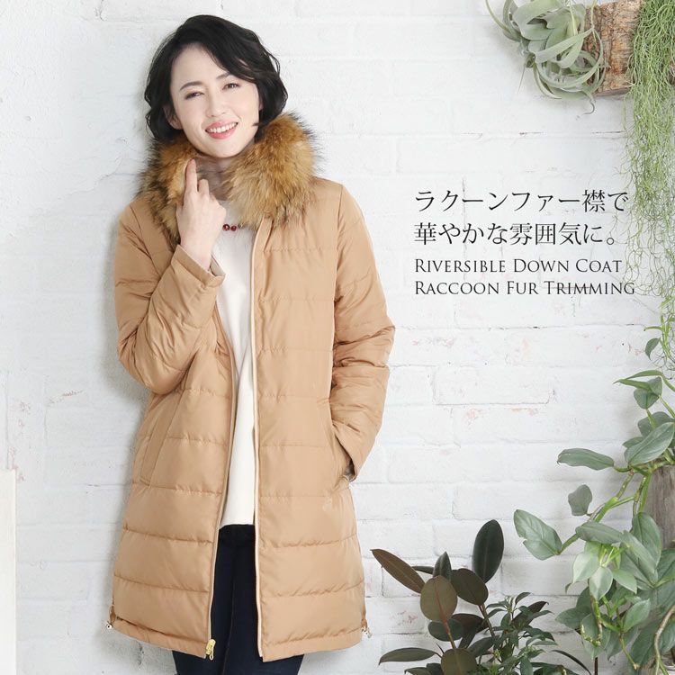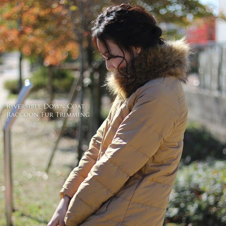 | 商品名:リバーシブル ダウンコート ラクーン ファー 襟付き / レディース |