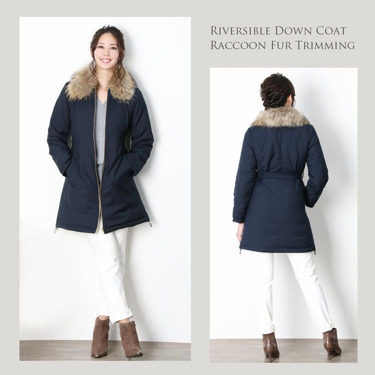 リバーシブル ダウンコート ラクーン ファー襟付き レディース 6F