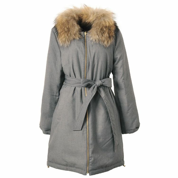 | 素材 | 表地: ポリエステル80%、レーヨン20% 裏地: ポリエステル100% 詰物: ダウン80%、フェザー20% 毛皮: チャイニーズラクーン/タヌキ |