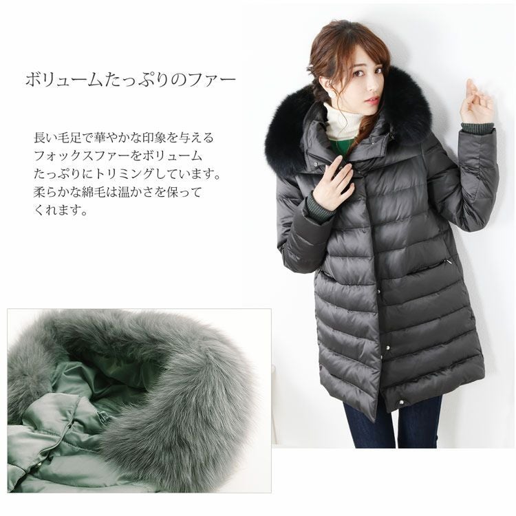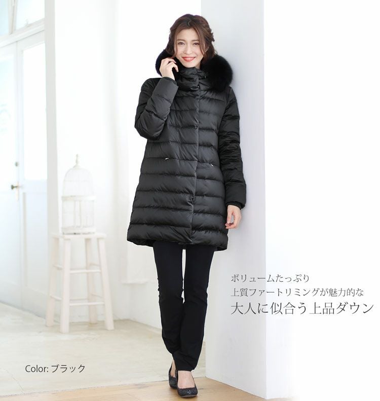 ダウンコート レディース フォックス トリミング
