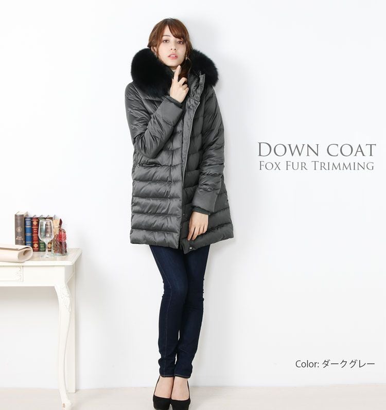 商品名:ダウンコート フード付き フォックス ファー トリミング ダウン90% / レディース