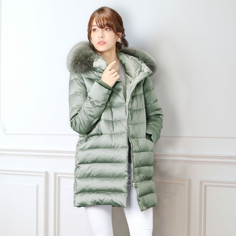ダウン 90% 上質 コート ライトグリーン 光沢