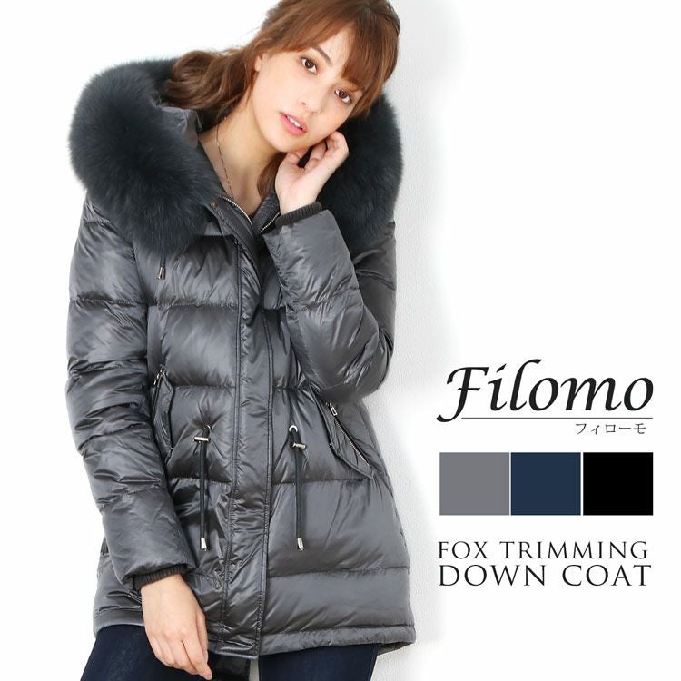 | 商品名:Filomo [フィローモ] ダウンコート レディース フード付き フォックス ファー トリミング ダウン90% 使用 グレー/ネイビー/ブラック M/L/LL |