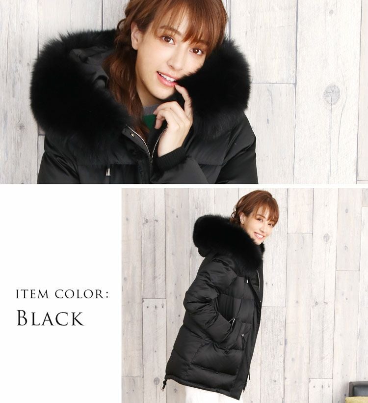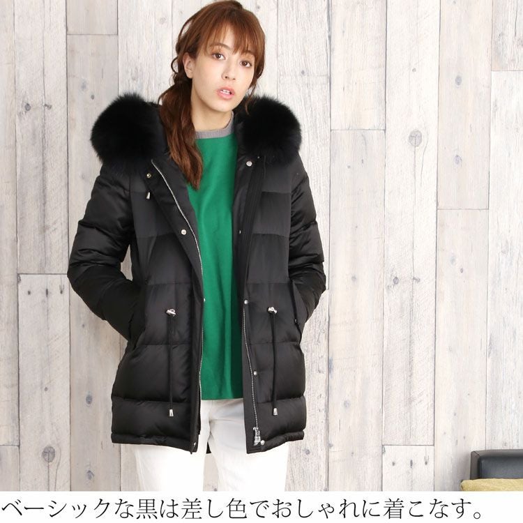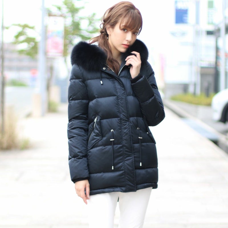 | 素材 | 表地:ポリエステル100% 詰物:ダウン90%、フェザー10% 毛皮:フォックス 裏地:ポリエステル100% |