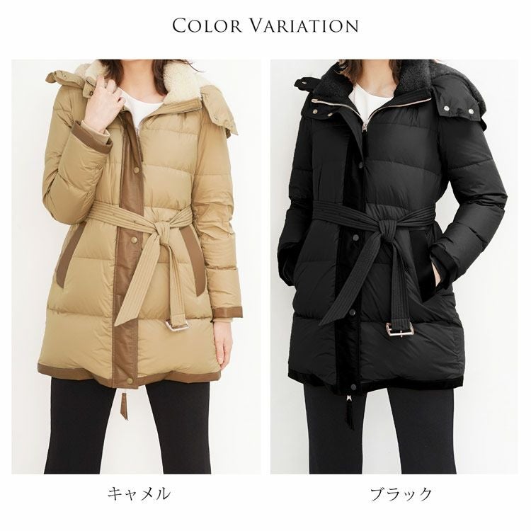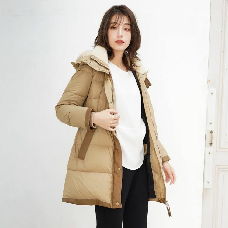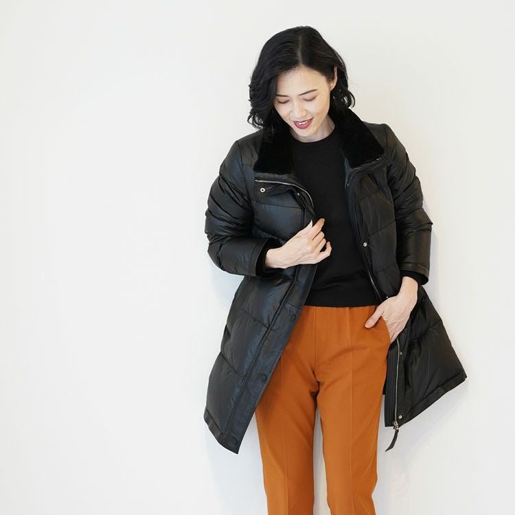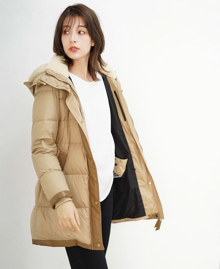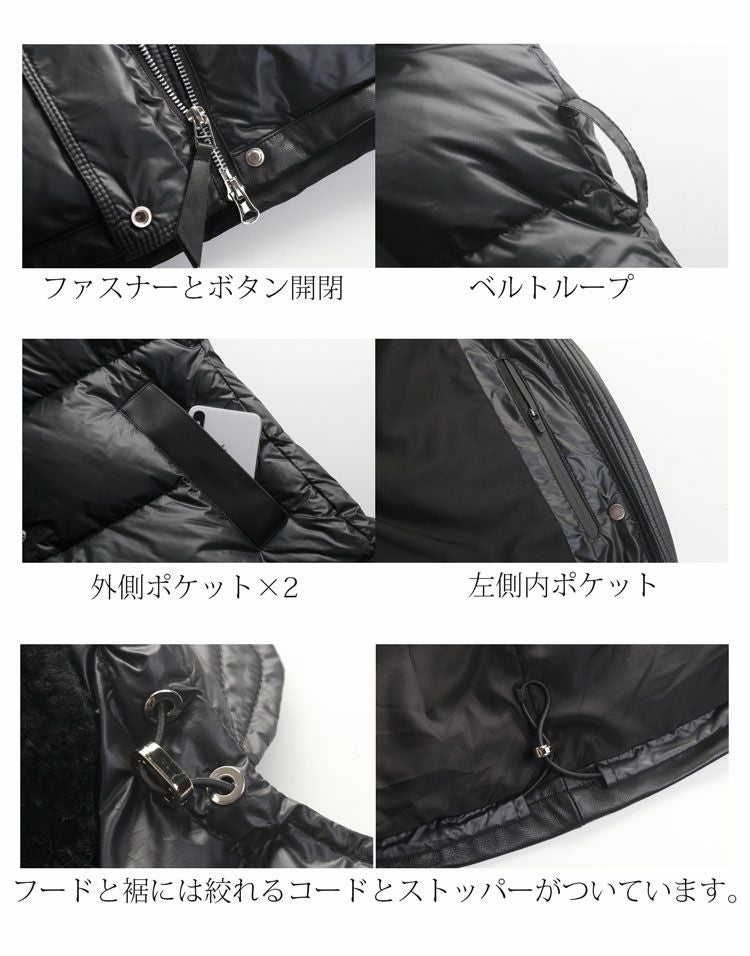 | 素材 | 表地:ポリエステル100% 裏地:ポリエステル100% 詰物:ダウン90%/フェザー10% 前立て・ポケット・付属部分:羊革 首回り・フード内側:ウールムートン |