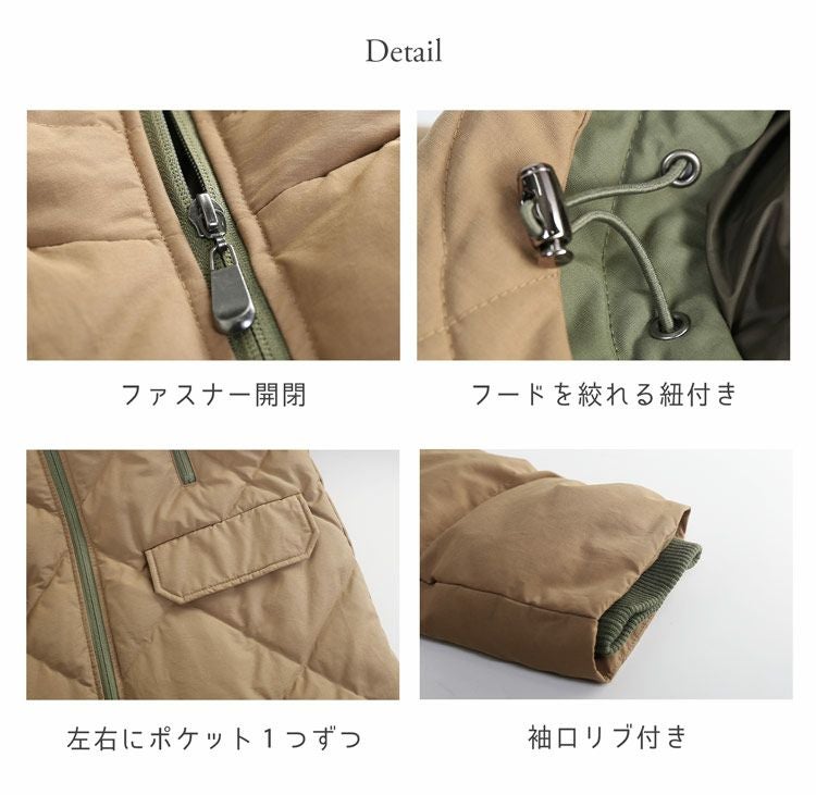 | 素材 | 表地:綿60% ナイロン40% 裏地:ナイロン100% 詰物 : 本体 ダウン80% / フェザー20% フード他部位 : ポリエステル100% リブ部分 : ポリエステル95% / ポリウレタン5% |