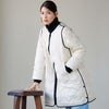 ダウンコート レディース コート アウター 大きいサイズ ゆったり ひざ丈 M L LL ジャケット 大きめ 女性 秋 冬 バイカラー 異素材 カジュアル ママ 防風 防寒 ギフト プレゼント