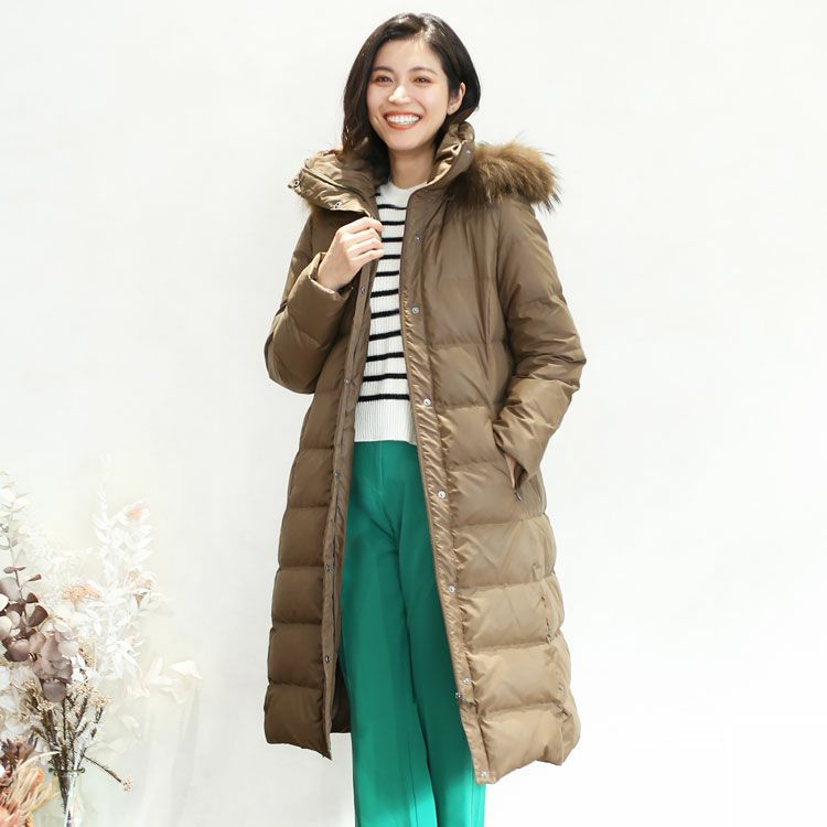 ダウンコート レディース ロング ダウン90% ラクーン ファー フード付き Filomo ブランド 100cm きれいめ ダウン コート ロングコート
