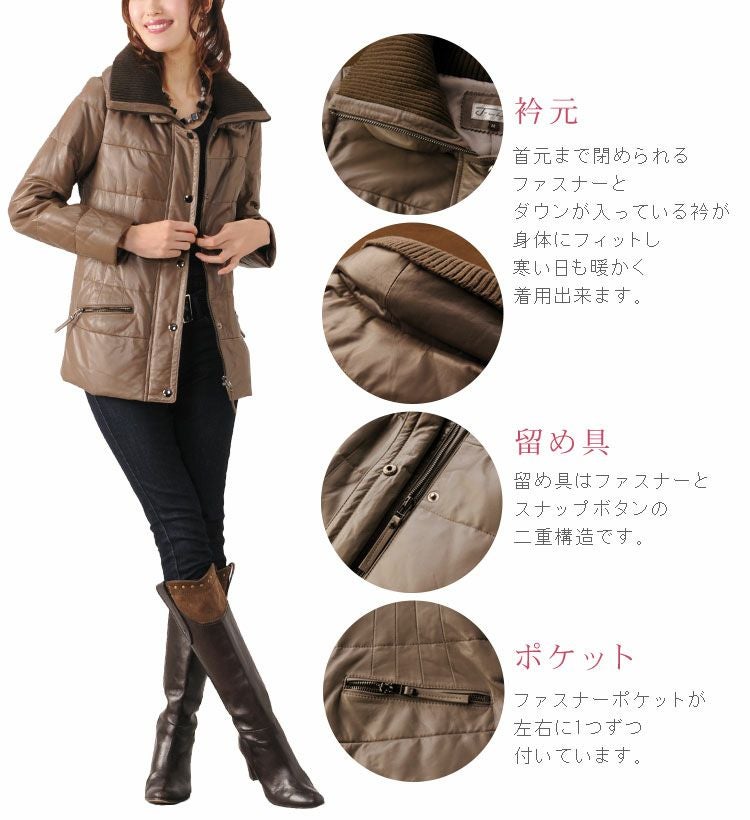 ラムレザー& ダウン コート レディース 7F