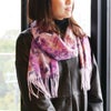 いつも色無地のマフラーなので、今回は華やかで明るい柄ものにしました。黒いコートにもよく映えます。