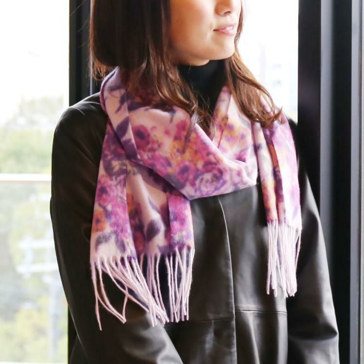 持っているカシミヤ100%のマフラーはふあふあしてますが、この商品は少しふあふあしてますね。カラーとデザインがあまりない商品かと思ってピンク系フラワーにしました。気に入っています。どうもありがとうございました。