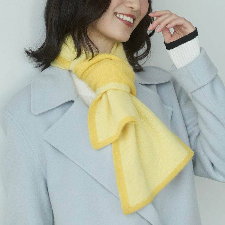 全長135cm、幅20cmのジャガード編みのカシミヤマフラー。