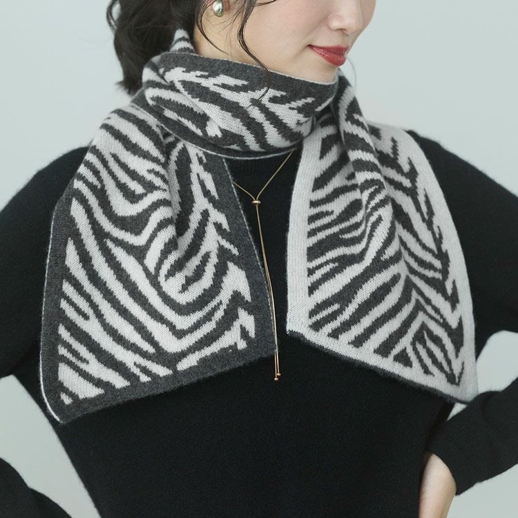 カシミヤ 100% ニット マフラー 【ネコポスで送料無料】レディース ショートマフラー ミニマフラー 135cm×20cm 小さめ 短め ジャガード カシミヤ100% カシミヤマフラー ゼブラ柄 無地 ギフト プレゼント