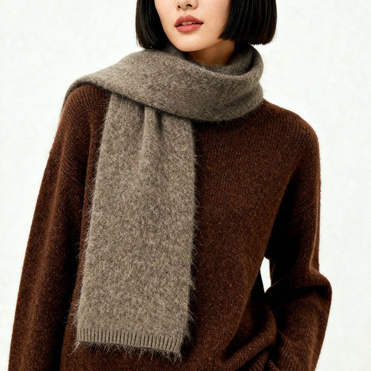 カシミヤ100%の糸を贅沢に使用し、ふんわりとしたシャギー感を出したニットマフラー。