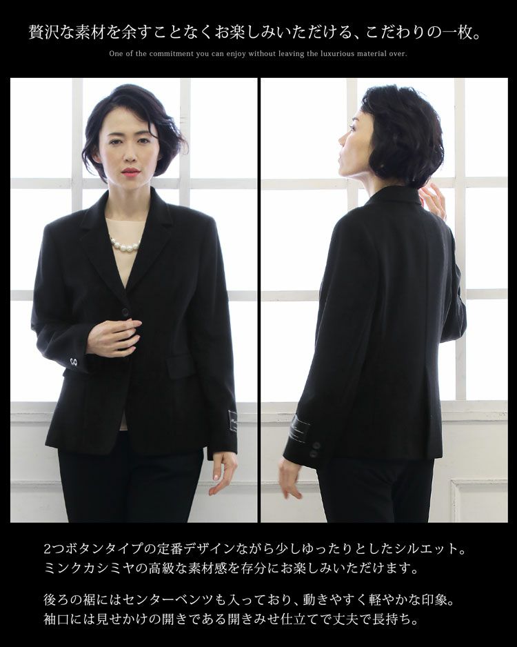 ミンクカシミヤ テーラード ジャケット 2つボタン / レディース ブラック 7F